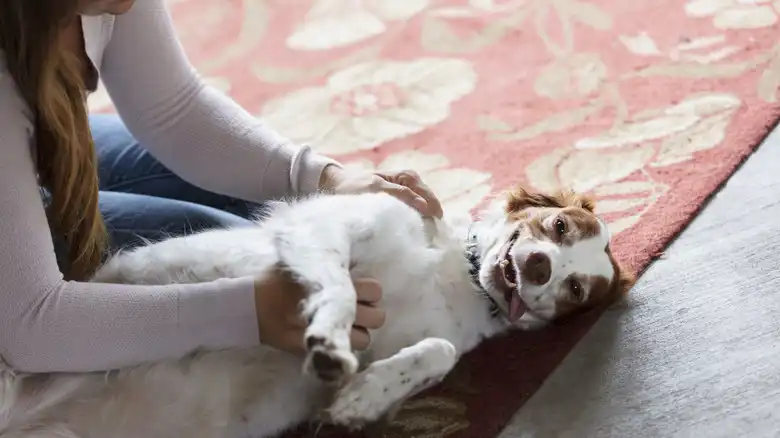 Your dog rolls over and exposes its belly