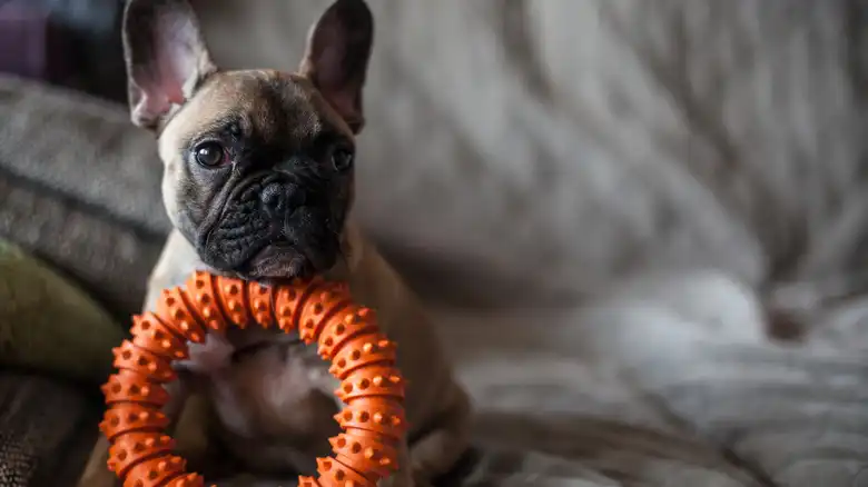 Puppies are curious by nature, and the bathroom often feels like a treasure chest of textures to explore, with crinkly paper, fluffy towels, and anything that rolls nearby. Frenchies have a mischievous streak, so a little chaos comes with the territory. Chewing is a big part of this stage of puppyhood, too. From shoes to furniture, young dogs will test just about everything with their teeth.